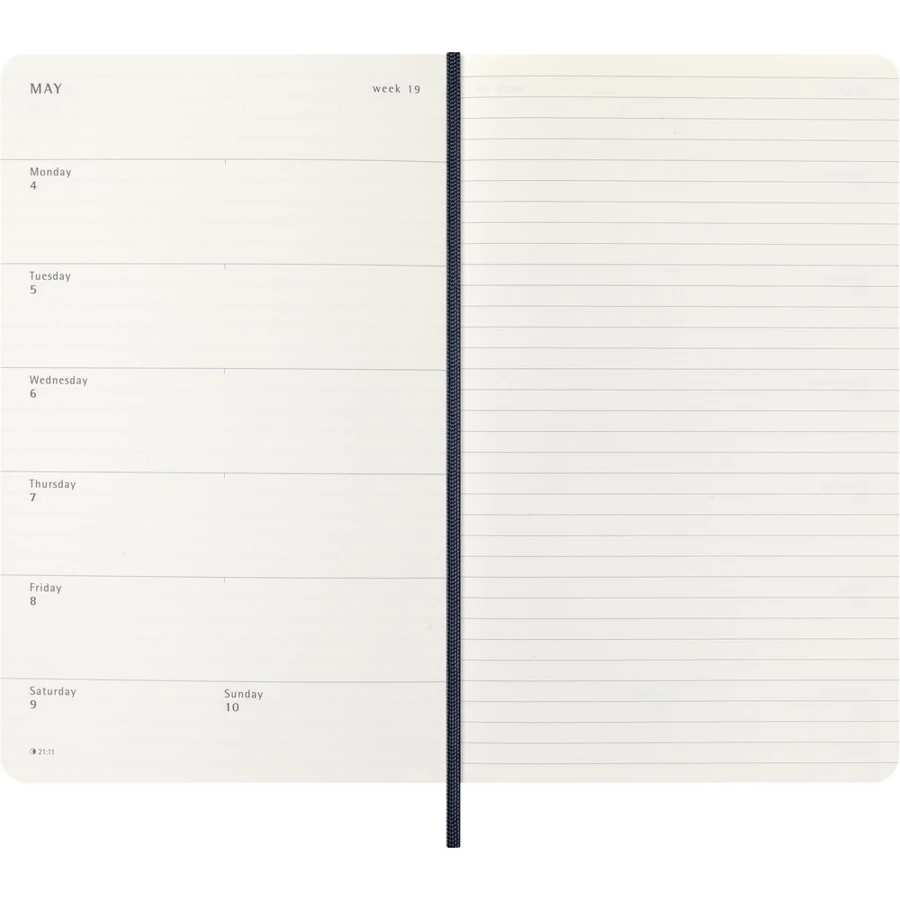 Kalendarz duży (ok. A5, large) MOLESKINE z notatnikiem, miękka okładka, tygodniowy (144 str.), zakładka i elastyczna opaska do zamykania
