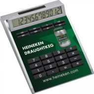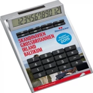 Niepowtarzalny kalkulator z kolekcji CrisMa z 12 cyfrowym wyświetlaczem, wykonany z plastiku w kolorze srebrnym. Posiada nietypową nakładkę w kolorze białym, która może zostać w całości nadrukowana. Zasilanie solarne i na baterię.