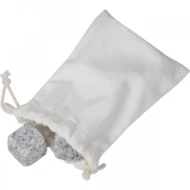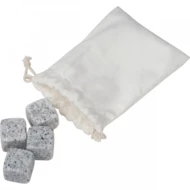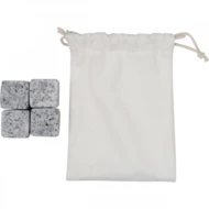 Zestaw składający się z 4 kamiennych kości do chłodzenia napoi, zapakowany w bawełniany woreczek.