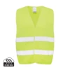 Kamizelka odblaskowa, wykonana z PET z recyklingu, całkowita zawartość materiałów obliczona na podstawie wagi całkowitej przedmiotu: 76%, zgodna z normami EN ISO 20471:2013+A1:2016, UE 2016/425/UE, ślad węglowy produktu: 0,98 kg CO2