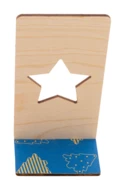 Wykonany na zamówienie, kolorowy uchwyt na telefon komórkowy na biurko, wykonany ze sklejki brzozowej, z wyciętym motywem świątecznym. Cena zawiera nadruk UV LED z przodu. Dostarczany na płasko. Min. ilość: 50 sztuk.