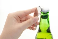Metalowy brelok z otwieraczem do butelek. W pudełku z papieru kraft.
