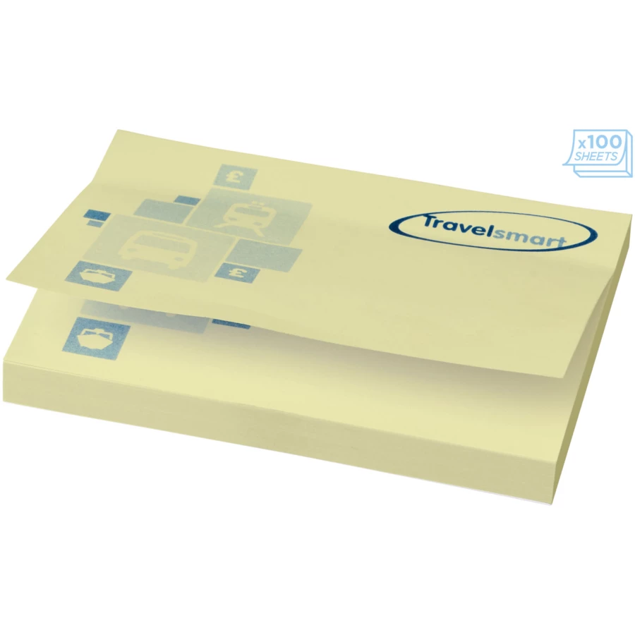 Karteczki samoprzylepne Sticky-Mate®. Składa się z czystych kartek o gramaturze 80g/m2. Standardowo 50 kartek, dostępny również w wersjach 25 lub 100 kartek. Możliwość pełnego, kolorowego zdobienia każdego arkusza. Wymiar arkusza: 100x75mm.