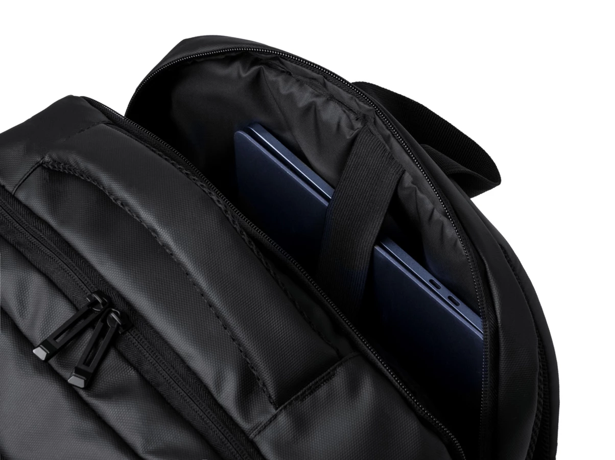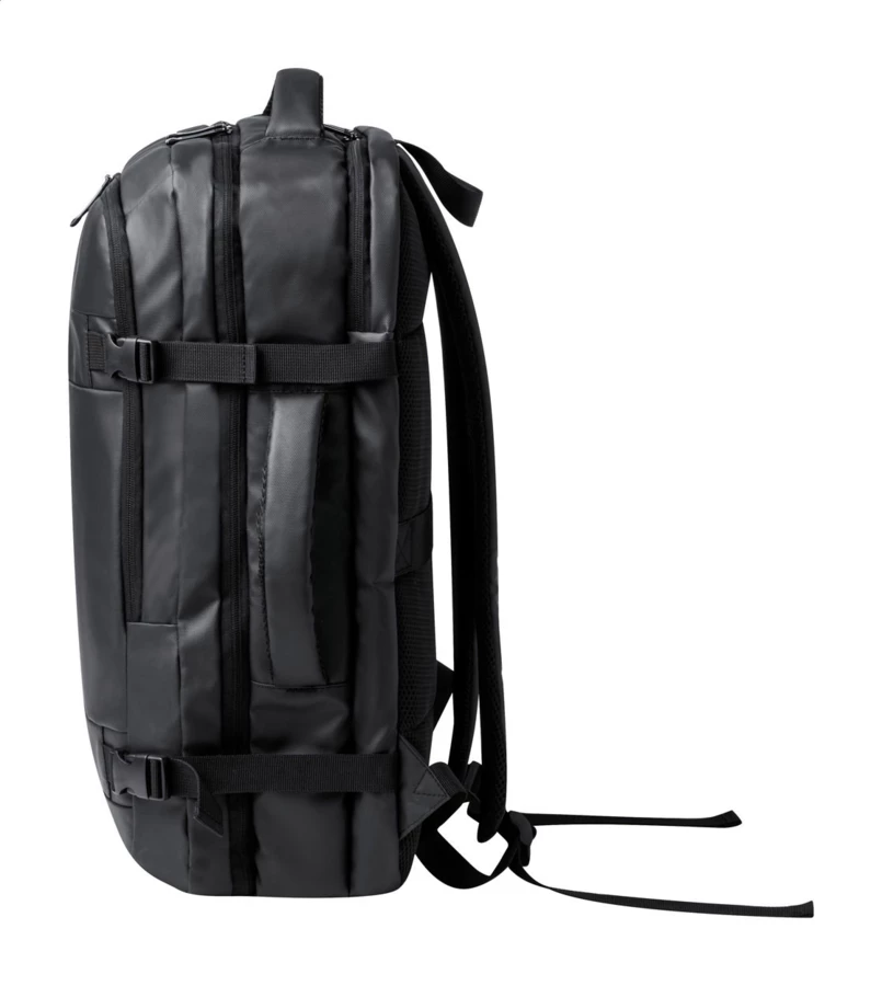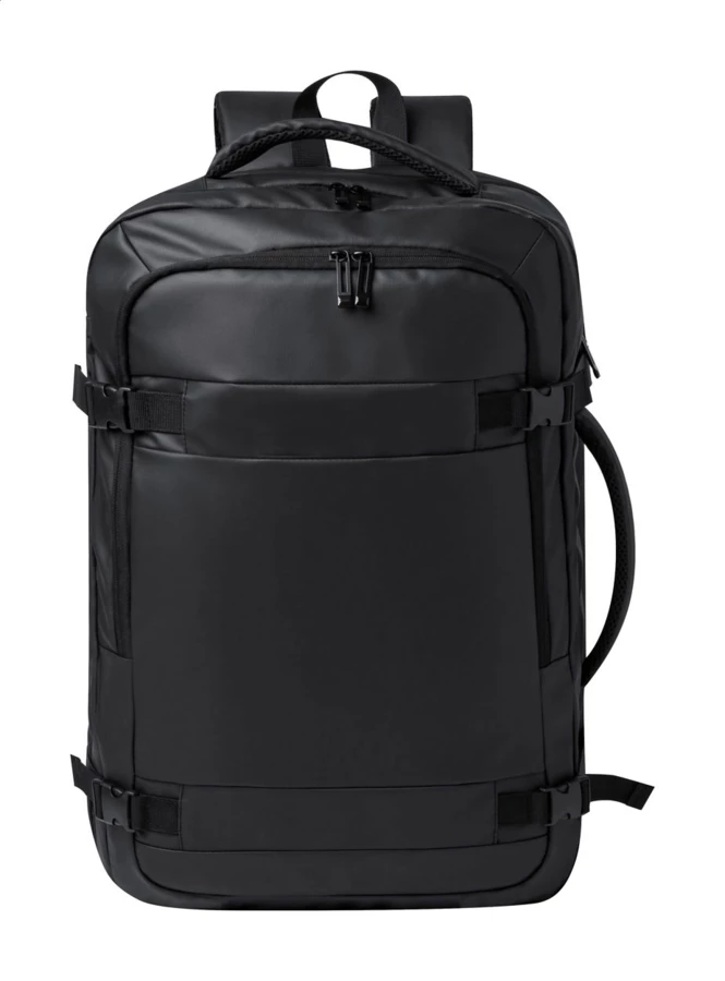 Dwufunkcyjny plecak i torba na dokumenty ze skóry PU z przegródkami zapinanymi na zamek, wyściełaną przegrodą na laptopa (17") i siateczką, paskiem do wózka, wyściełanymi plecami i paskami na ramiona.