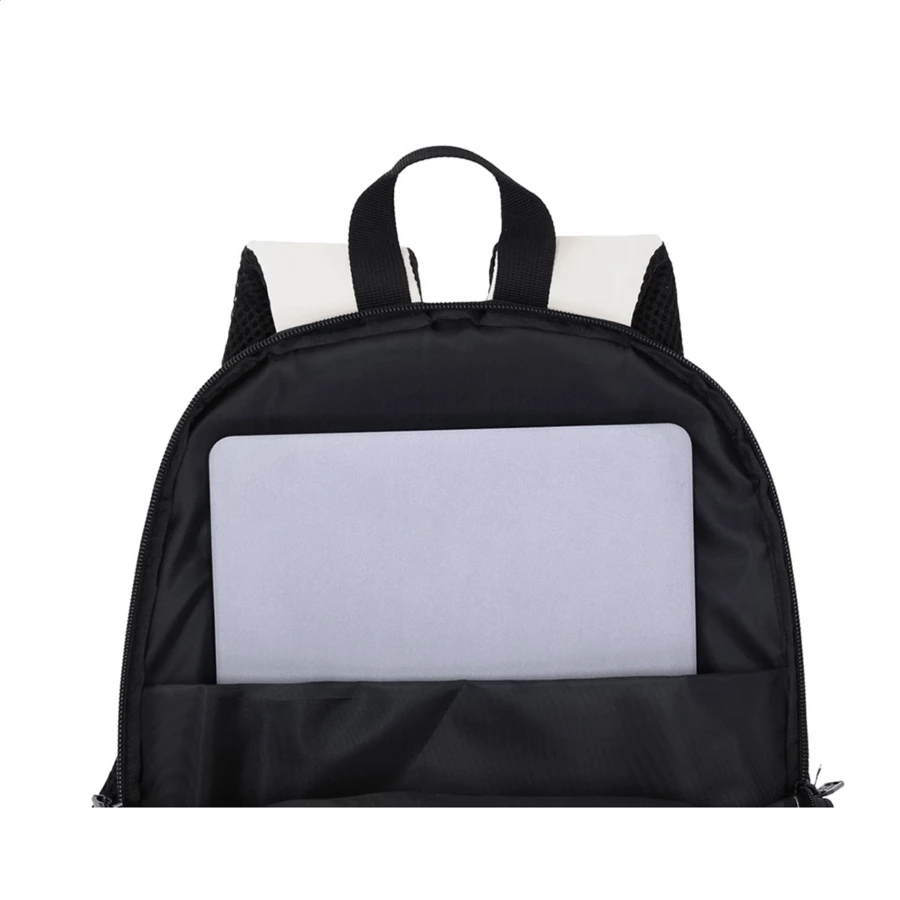 Plecak z miękkiej skóry PU z kieszenią zapinaną na zamek, wyściełaną przegrodą na laptopa (15"), kieszeniami bocznymi,wyściełanymi plecami i paskami naramiennymi.