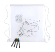 Świąteczny worek ze sznurkami dla dzieci do kolorowania. W zestawie z 4 kredkami. Włóknina 80 g/m².