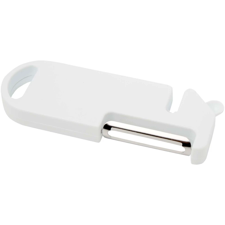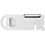 To wielofunkcyjne narzędzie kuchenne łączy w sobie cztery podstawowe funkcje w jednej kompaktowej konstrukcji. Wykonane z tworzyw sztucznych pochodzących z recyklingu, zawiera obieraczkę, otwieracz do butelek, ostrzałkę do noży i spiczastą końcówkę do usuwania oczek z ziemniaków. Wbudowany otwór do zawieszania umożliwia łatwe przechowywanie. Praktyczne i oszczędzające miejsce, jest uniwersalnym, niezbędnym gadżetem każdego domowego kucharza.