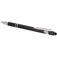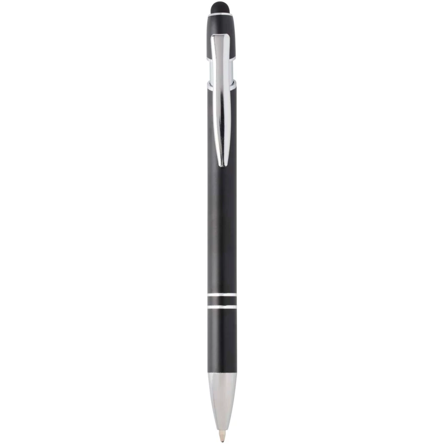 Długopis Kish ze srebrnym wykończeniem ma korpus wykonany z aluminium z recyklingu i rysik dotykowy wykonany z silikonu. Aluminium z recyklingu ogranicza ilość odpadów na wysypiskach śmieci i pomaga chronić zasoby naturalne w celu zmniejszenia emisji gazów cieplarnianych. Kolor tuszu: Czarny. Żywotność: 800 metrów. Rozmiar stalówki: 1,0 mm.
