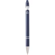 Długopis Kish ze srebrnym wykończeniem ma korpus wykonany z aluminium z recyklingu i rysik dotykowy wykonany z silikonu. Aluminium z recyklingu ogranicza ilość odpadów na wysypiskach śmieci i pomaga chronić zasoby naturalne w celu zmniejszenia emisji gazów cieplarnianych. Kolor tuszu: Niebieski. Żywotność: 800 metrów. Rozmiar stalówki: 1,0 mm.