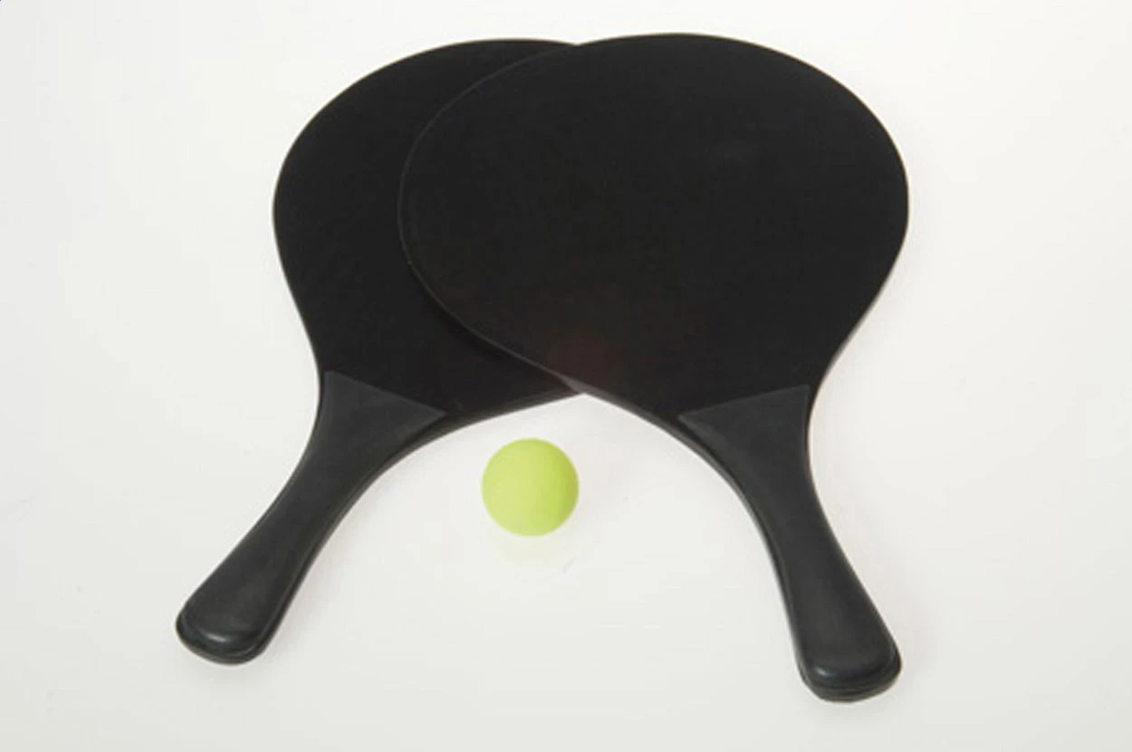 Drewniane rakiety do tenisa plażowego z piłką.
