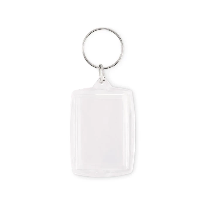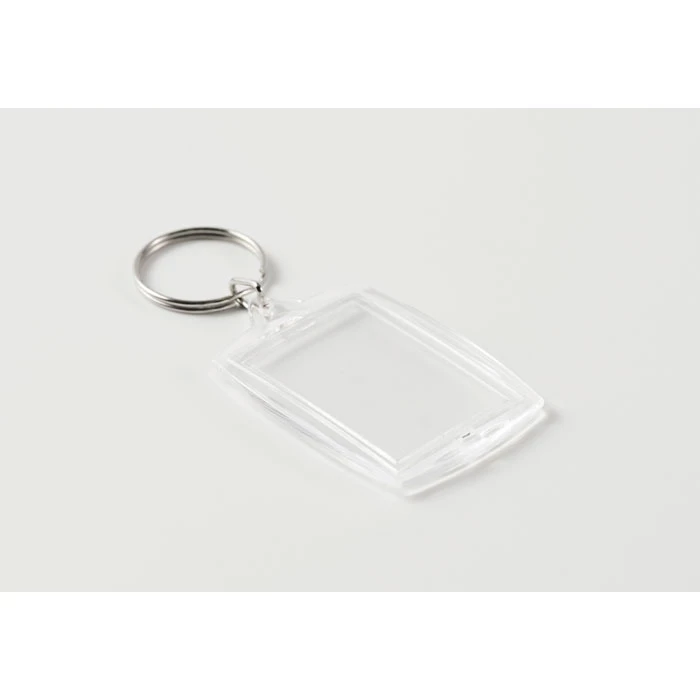 Klasyczny akrylowy brelok do kluczy z pełnokolorową papierową wkładką. Rozmiar wewnętrznego zdjęcia: 4,1 x 2,7 cm