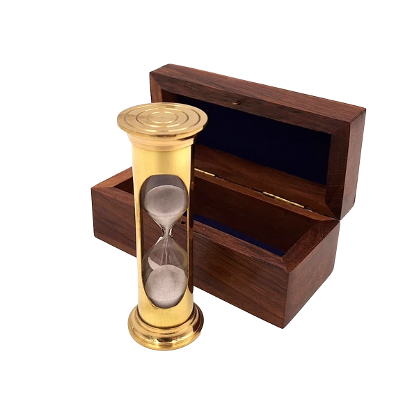 Mosiężna klepsydra ROUND STP99/4 w pudełku drewnianym - 3 minuty