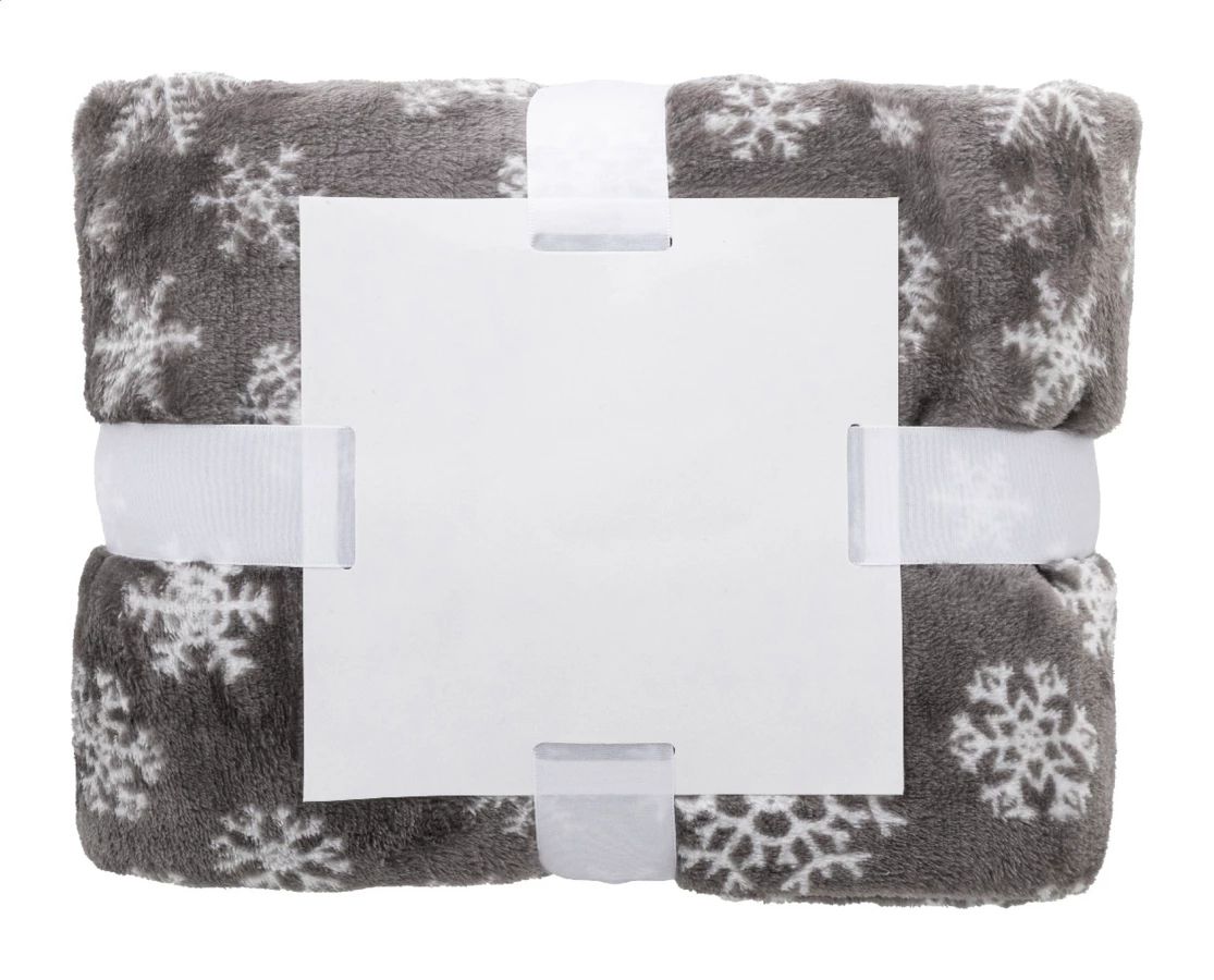Koc świąteczny z flaneli polarowej RPET, 260 g/m². Z kartką papierową do nadruku i wstążką.