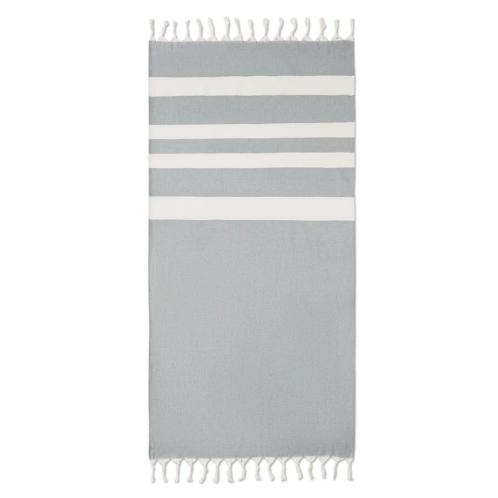 Koc Hamman / ręcznik plażowy z tkanin pochodzących z recyklingu: recyklingowanej bawełny i recyklingowanego poliestru (45%-55%). 140 gr/m².