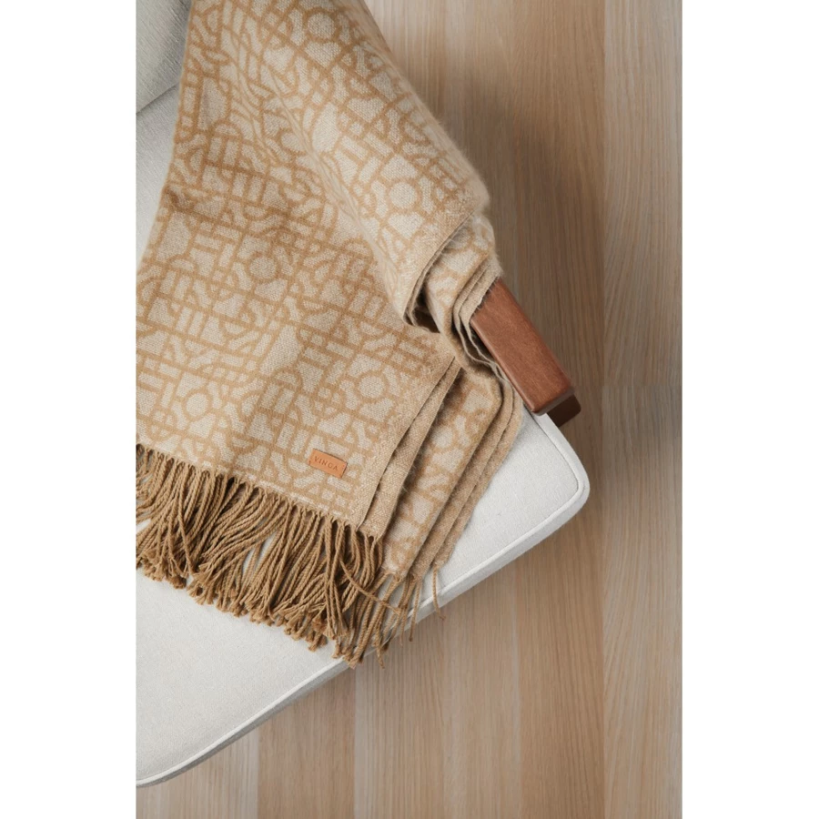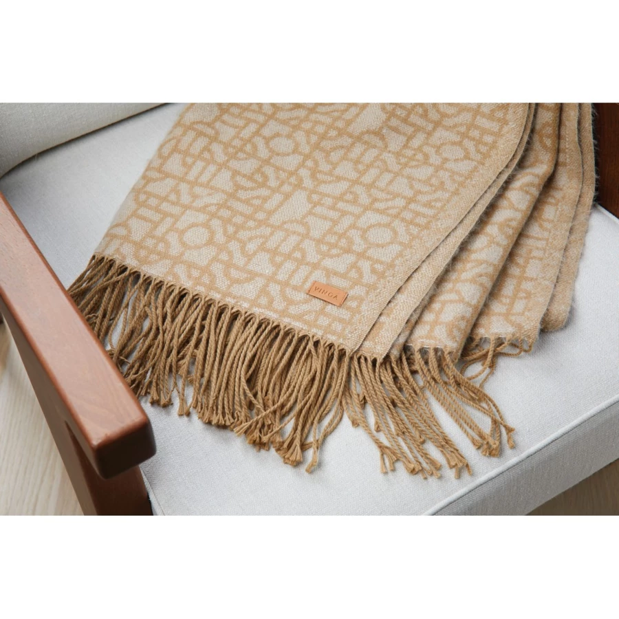 Koc z geometrycznym wzorem, wykonany z materiałów syntetycznych, spełnia standardy normy OEKO-TEX Standard 100