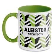 Kubek ceramiczny o pojemności 300 ml pokryty specjalną warstwą pod sublimację, z kolorowym uchwytem i wnętrzem.
