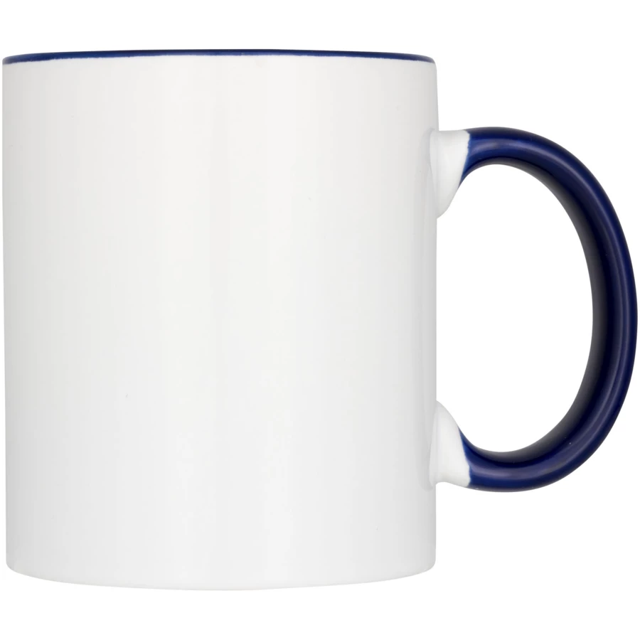 Ten klasyczny kubek ceramiczny posiada specjalną powłokę do sublimacji. Wnętrze kubka pasuje kolorystycznie do uchwytu. Zgodny z normą EN12875-1. Można myć w zmywarce również po naniesieniu dekoracji. Pojemność wynosi 330ml. Zapakowany w białe pudełko.
