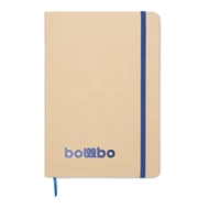 Notatnik A5 z twardą okładką z kartonu pochodzącego z recyklingu. Beżowa okładka z kartonowym pokryciem. 160 stron w linie (80 kartek). Gumka zamykająca, wstążkowa zakładka dopasowana do uwidocznionego koloru. Po grawerowaniu laserowym kolor jest widoczny. FSC®-certified | FSC MIX CREDIT, P7.1, FSC-C213206