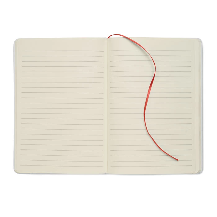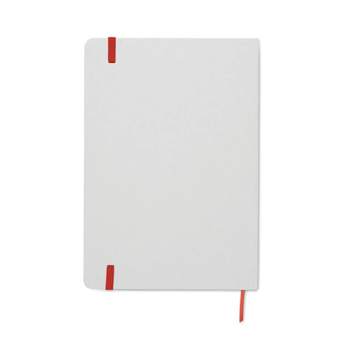 Notatnik A5 z twardą okładką wykonany w 70% z kartonu po mleku i w 30% z papieru z recyklingu. Białą okładka w kartonowej oprawie . 160 stron w linie (80 kartek). Gumka zamykająca, wstążkowa zakładka dopasowana do uwidocznionego koloru. Po grawerowaniu laserowym kolor jest widoczny.