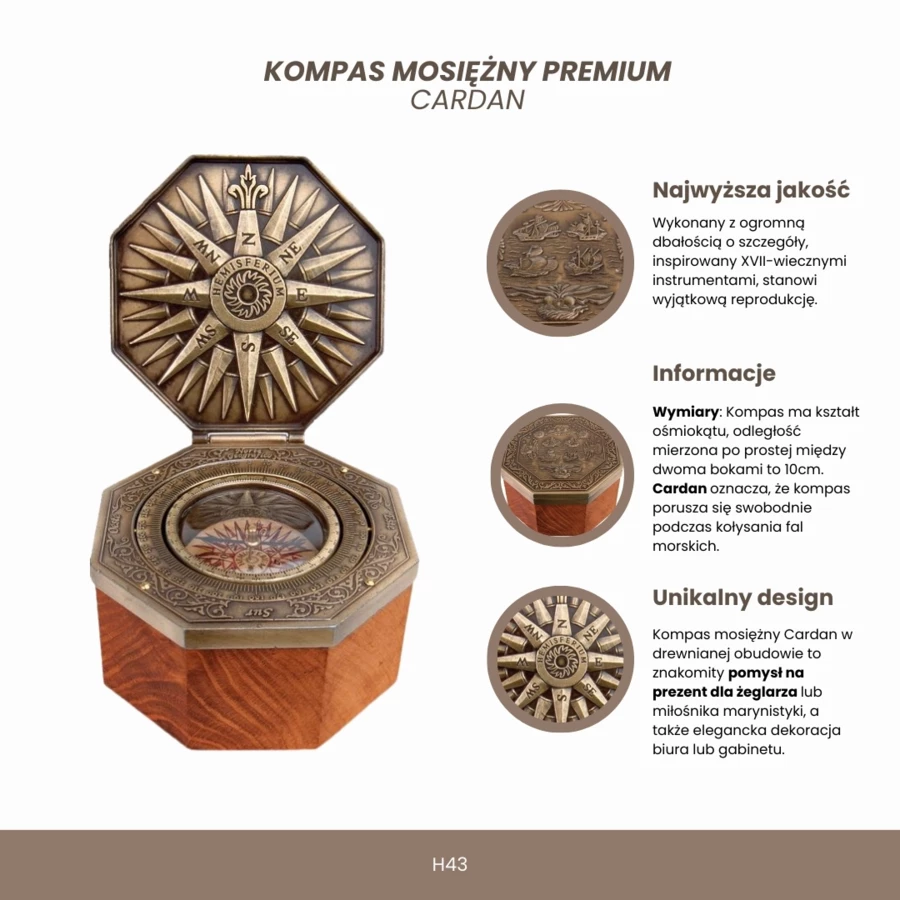 Ekskluzywny Kompas Magnetyczny Cardan H43 - Nautyczna Replika z XVII Wieku
