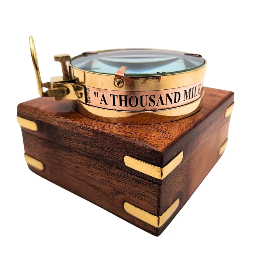 ·Inspirujący Cytat: Na rancie kompasu znajdziesz sentencję w języku angielskim: "A thousand mile journey begins with a single step" – inspiracja do każdej podróży, tej małej i tej wielkiej.