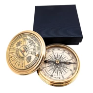 Kompas Mosiężny Retro + 40-letni Kalendarz w Eleganckim Pudełku – Prezent dla Żeglarza i Szefa – COM101 (NMT-323111)