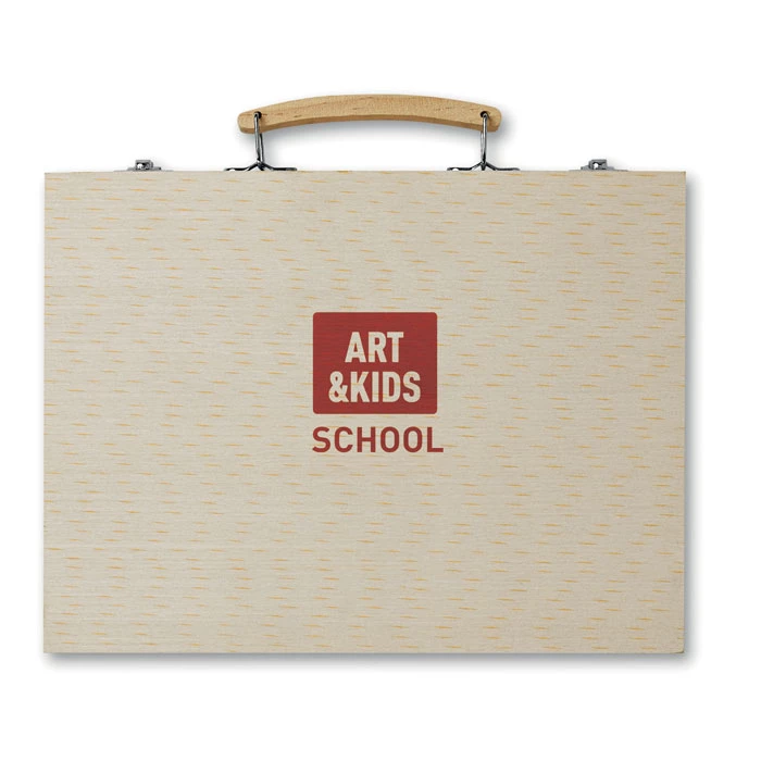 Komplet artysty w drewnianym pudełku. 66 elementów.