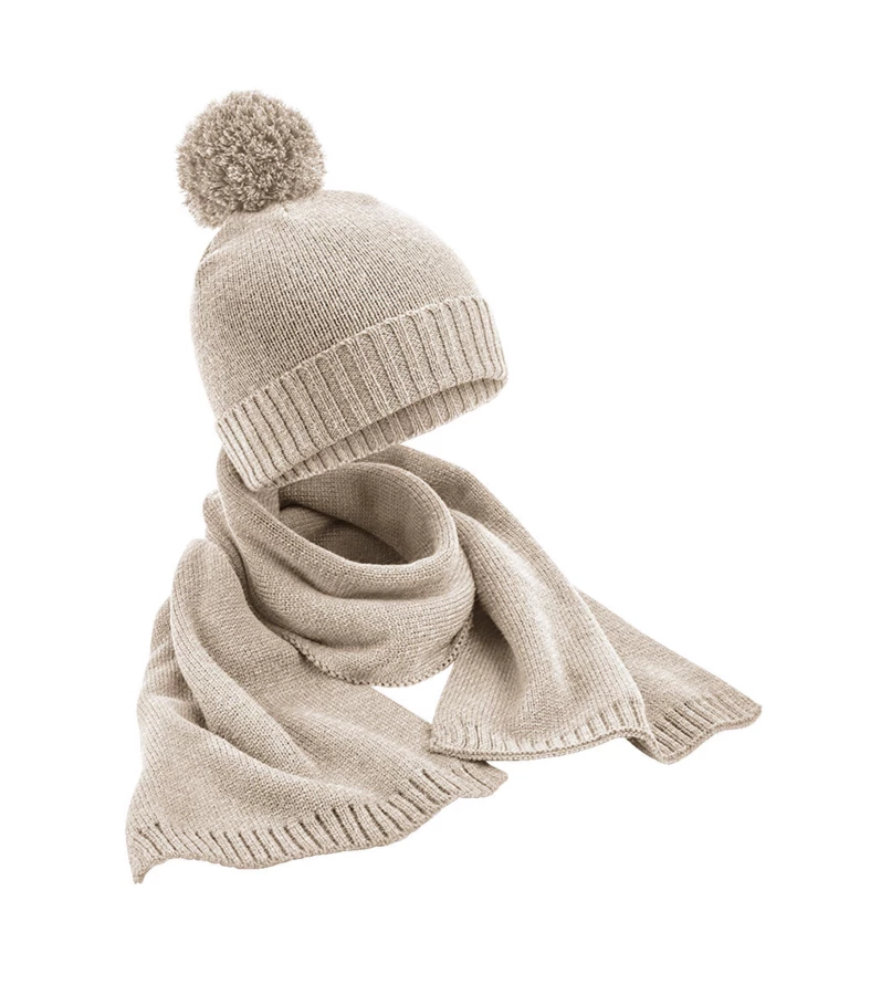 ·Dwuczęścioey zestaw: czapka z prążkowanymi mankietami oraz szalik z dzianiny