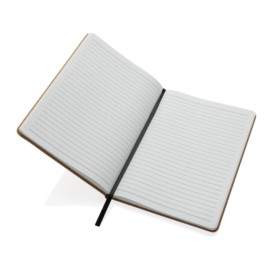 Notatnik A5 (80 białych kartek w linie o gramaturze 120 g/m2), twarda okładka wykonana z korka z certyfikatem FSC®, tasiemka zakładkowa, strony z papieru kamiennego, w opakowaniu z papieru kraftowego z certyfikatem FSC® mix, ślad węglowy produktu: 0 kg CO2