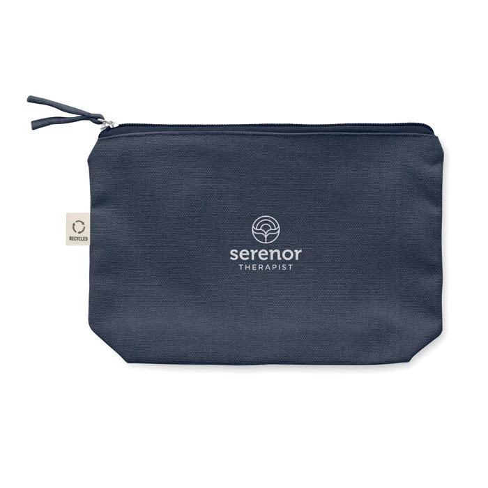 Torebka na kosmetyki lub inne akcesoria z materiału z recyklingu (70% bawełny z recyklingu i 30% poliestru RPET) z dopasowanym zamkiem błyskawicznym. 320 gr/m². Ten produkt może się kurczyć po zadrukowaniu.