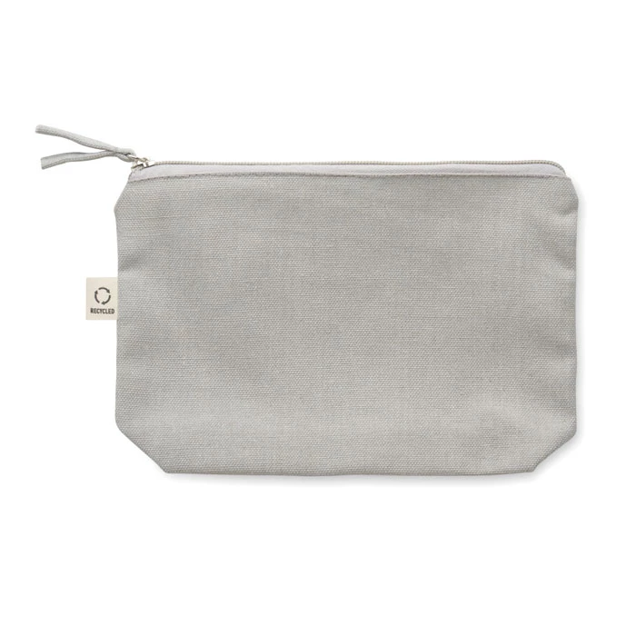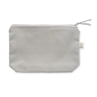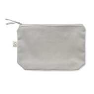 Torebka na kosmetyki lub inne akcesoria z materiału z recyklingu (70% bawełny z recyklingu i 30% poliestru RPET) z dopasowanym zamkiem błyskawicznym. 320 gr/m². Ten produkt może się kurczyć po zadrukowaniu.