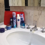 Kosmetyczka wykonana z poliestru, zapinana na zamek błyskawiczny.
