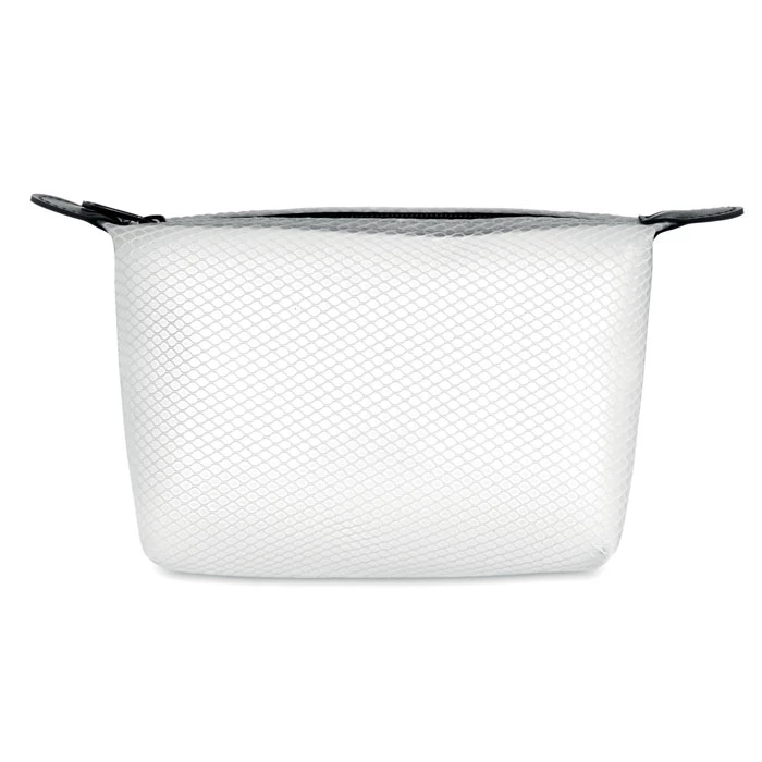 Kosmetyczka z przezroczystej siatki EVA z czarnym zamkiem.