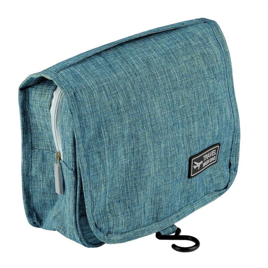 Kosmetyczka z wieloma przegrodami, przegroda główna na zamek błyskawiczny, 1 kieszeń siateczkowa, przezroczysta kieszeń oraz kieszeń przednia na zamek błyskawiczny, haczyk do powieszenia w komplecie