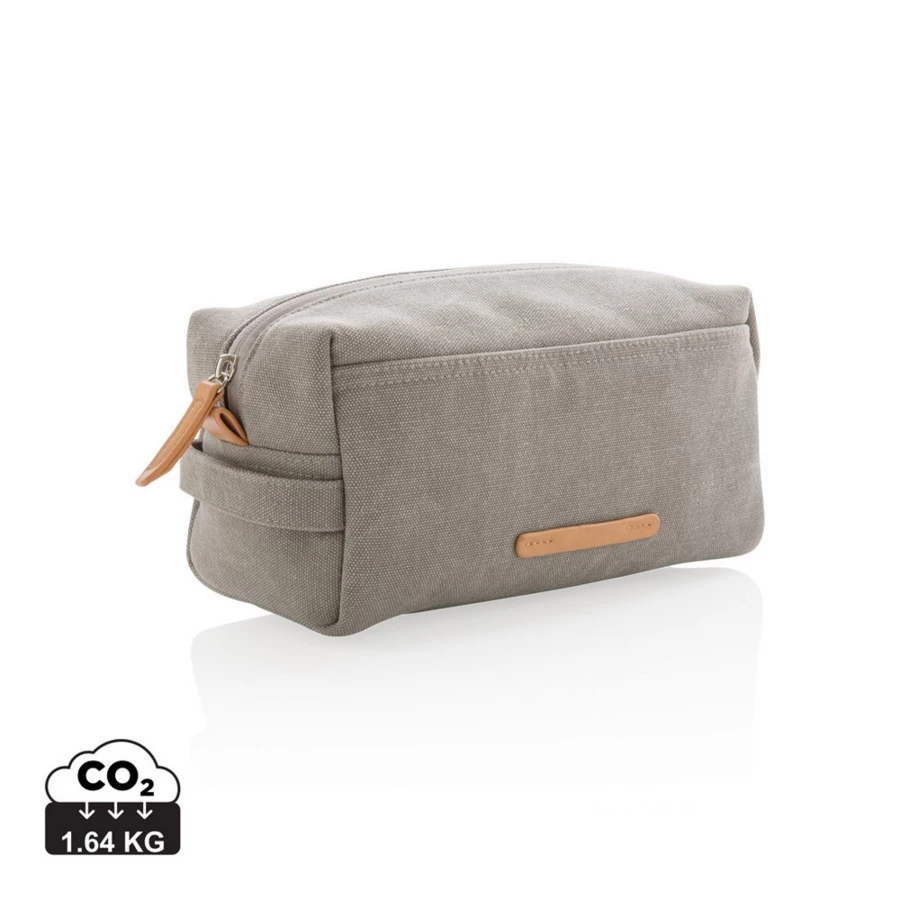 Kosmetyczka z naturalnego i wytrzymałego płótna, kompaktowy rozmiar, nie zawiera PVC, ślad węglowy produktu: 1,64 kg CO2