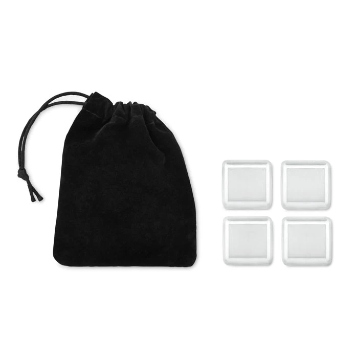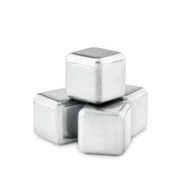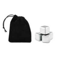 Zestaw 4 kostek do lodu wielokrotnego użytku ze stali nierdzewnej, w aksamitnym etui.