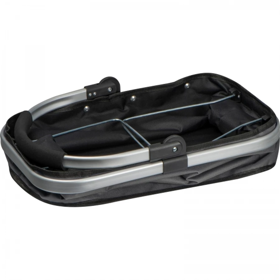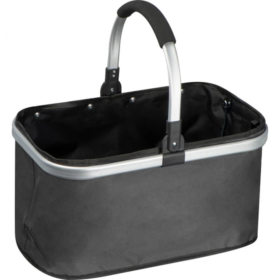Koszyk na zakupy z aluminiowymi rączkami, wykonany z wytrzymałego poliestru 600D oraz metalowej ramy.