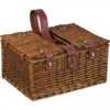 Wiklinowy kosz piknikowy dla 4 osób. W koszu znajdują się: 4 szklanki, 4 porcelanowe talerze, 4 serwetki, 12 sztućców, solniczka i pieprzniczka, 3 przegródki na butelki, nóż kelnerski i wbudowana przegroda chłodząca.