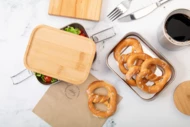 Pudełko na lunch ze stali nierdzewnej pochodzącej z recyklingu z bambusową pokrywką i bezpiecznym zamknięciem na klamrę. Z 2 przegródkami o pojemności 340 i 600 ml.