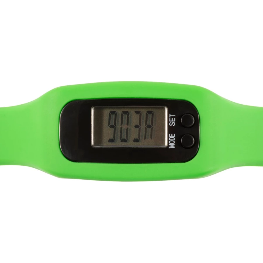 Opaska na rękę z krokomierzem, liczy ilość kroków (do 99.999), spalone kalorie oraz przebyty dystans