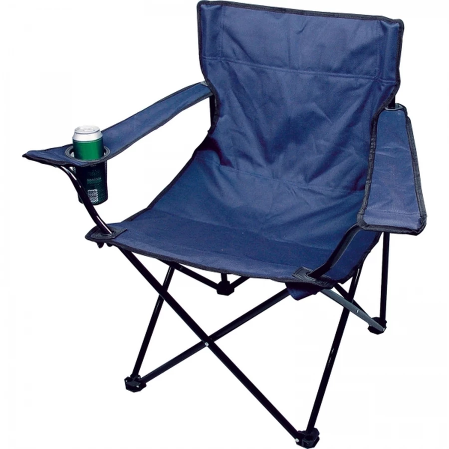 Składane krzesło z poliestru, ze stalowym stelażem. Posiada podłokietniki i uchwyt na kubek. Pakowane w futerał. Maksymalne obciążenie 100 kg.