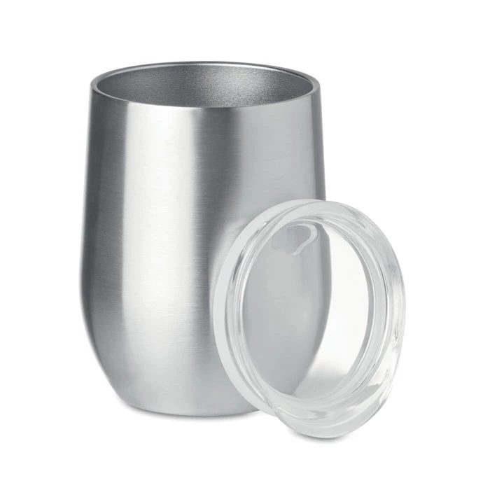 Kubek 300 ml z podwójną ścianką ze stali nierdzewnej 304 18/8. Może być również używany jako kieliszek do wina.
