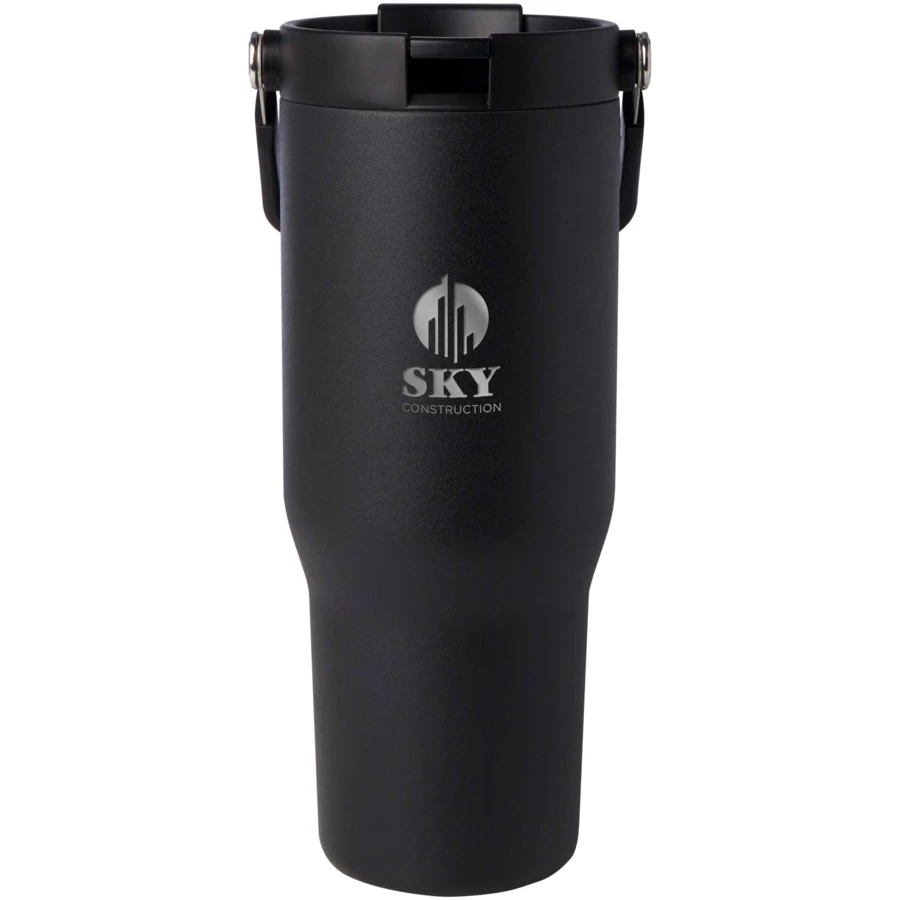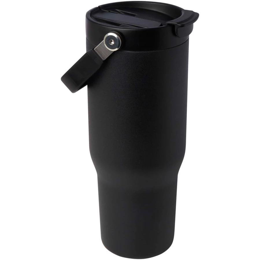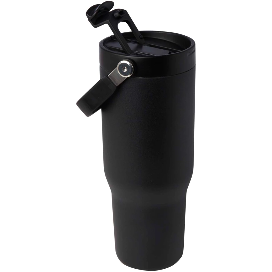 Kubek Bronx o pojemności 900 ml wykonany jest ze stali nierdzewnej z certyfikatem RCS i odznacza się konstrukcję z podwójnymi ściankami próżniowymi oraz izolacją wykonaną z miedzi. Pokrywka pełni podwójną funkcję: posiada składaną słomkę ułatwiającą picie oraz otwieraną na zatrzask przykrywkę z wygodnym składanym uchwytem ułatwiającym przenoszenie. Pasuje do większości samochodowych uchwytów na kubki. Zapakowany w pudełko upominkowe wykonane z kartonu z recyklingu.