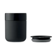 Ceramiczny kubek ze zdejmowalnym silikonowym rękawem i pokrywką z PP. Pojemność: 330 ml.