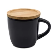 Ceramiczny kubek z bambusową pokrywką, która także może służyć jako podstawka pod kubek. Pojemność 320 ml.