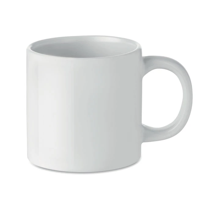 Ceramiczny kubek 200ml. Pokryty specjalną powłoką umożliwiającą nadruk techniką sublimacji. Pakowany w biały indywidualny kartonik.