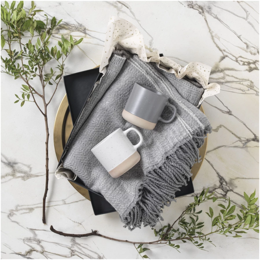 Kubek ceramiczny ze wzorem ogniska i nieszkliwionym dnem. Pojemność 360 ml. Oferowany w białym pudełku upominkowym.