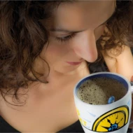 Kubek ceramiczny o pojemności 250 ml, sprzedawany w zestawie z łyżeczką w kolorze pasującym do wnętrza kubka.