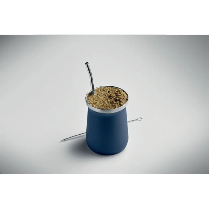 Kubek do yerby 2 ścianki stal nierdzewna z recyklingu (90% stal nierdzewna z recyklingu i 10% stal nierdzewne). Ma słomkę bombilla ze stali nierdzewnej i szczoteczkę do czyszczenia. Pojemność: 240 ml.