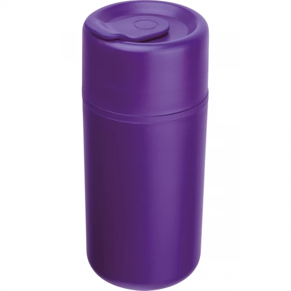Kubek do picia z podwójnymi ściankami wykonany z polipropylenu o pojemności 500 ml z przesuwną pokrywką do picia. Nadaje się do napojów gazowanych.